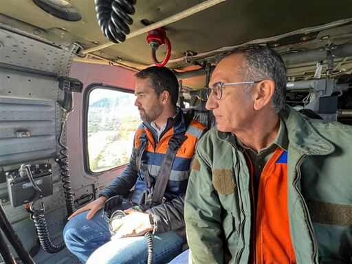 De helicóptero, Leite e os ministros, mais os secretários nacionais de Proteção e Defesa Civil, Wolnei Wolff, e de Assistência Social, André Quintão, e o coordenador estadual de Proteção e Defesa Civil, coronel Luciano Boeira, sobrevoaram os municípios de Caraá, Maquiné e São Leopoldo.