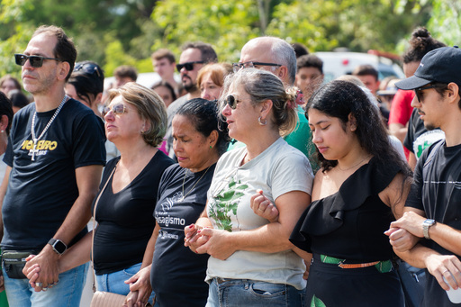 Uma cerimônia inter-religiosa reuniu dezenas de pessoas em homenagem às vítimas fatais do acidente com ônibus da Universidade Federal de Santa Maria (UFSM), no Vale do Taquari, na última sexta-feira (4). Familiares e amigos das vítimas, sobreviventes, servidores, estudantes e comunidade em geral estiveram na manhã desta sexta-feira (11) no Largo do Planetário, para compartilhar palavras de conforto. O encontro começou com falas de representantes religiosos e seguiu com uma homenagem simbólica: sete plantas foram colocadas em uma estrutura muito usada no curso técnico de Paisagismo, com o qual as vítimas tinham vínculo. Cada uma das plantas suspensas (nos kokedamas) representa um dos calouros que morreu no acidente.