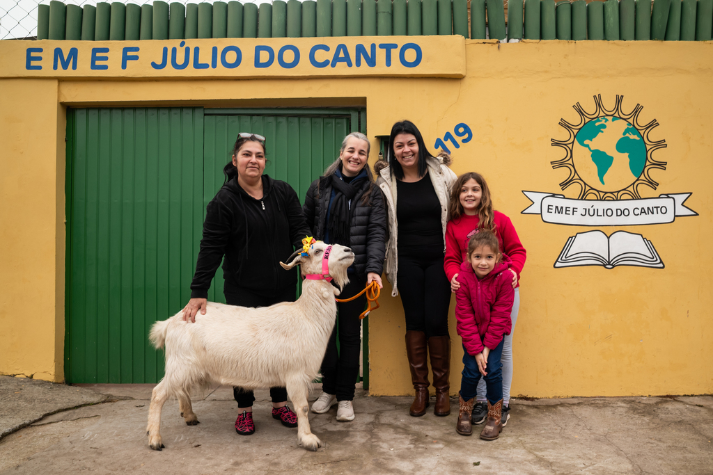 – Nilza, vocês nunca vão comer a Rebeca? Porque a gente ama muito ela. É uma relação muito bonita e diferente que a gente criou aqui na comunidade. Ela é meio que o xodó do Júlio do Canto. Ela faz parte também da escola – frisa Júlia sobre o apego com o animal.