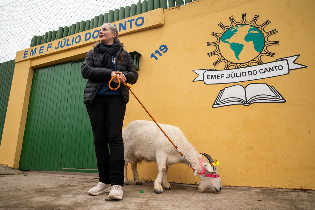 É só atravessar a pacata Rua Bolívia, em frente à Escola Municipal Júlio do Canto, que a Rebeca vira celebridade entre alunos, professores e servidores da rede escolar. Foi ali que a cabra conquistou o título de mascote da instituição. Ela participa das festas da escola e tira fotos com os estudantes. Sua última participação foi no show ao vivo com o cantor Beto Pires em uma festa junina no último sábado (5).