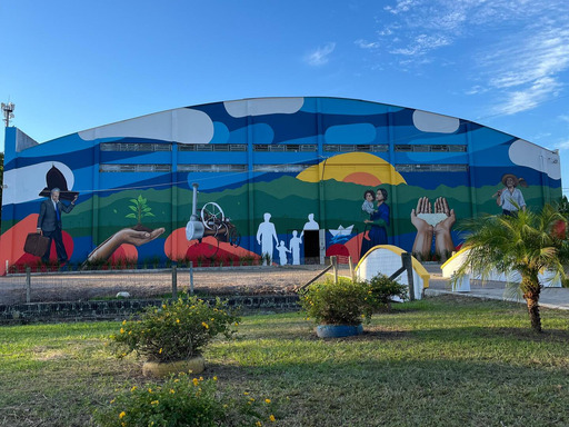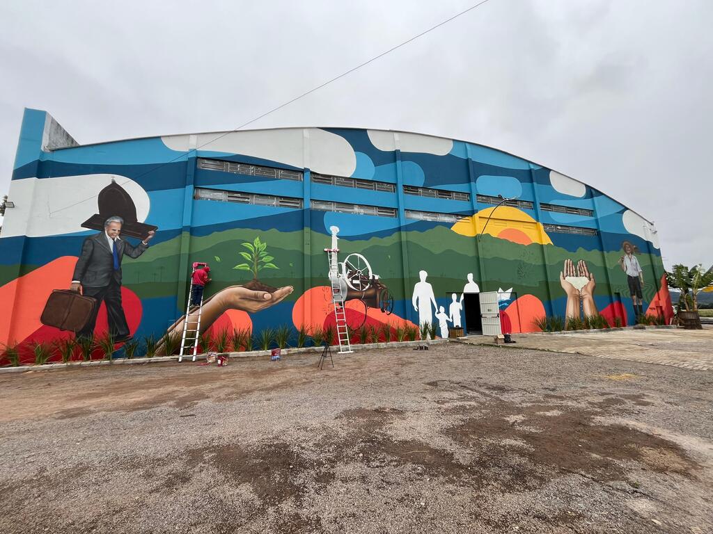 O mural ainda não foi totalmente concluído, mas está em processo de finalização.