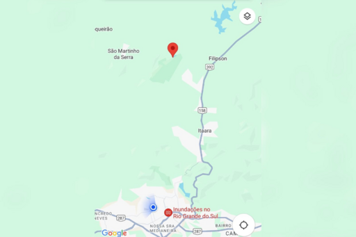 A Barragem Saturnino é no ponto vermelho. Em azul é a barragem Val de Serra. Água desce pelo rio até a Saturnino, onde tem 3 adutoras que captam água e trazem até a Estação de tratamento da Corsan na Vila Vitória.