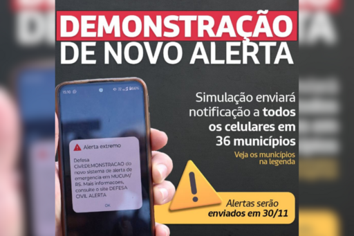A Defesa Civil Estadual vai alertar, a partir de 4 de dezembro, via notificações, todos os celulares que estiverem em uma área de risco de acontecer um evento meteorológico extremo. No próximo sábado (30), uma demonstração será realizada em 36 municípios gaúchos, inclusive Santa Maria.