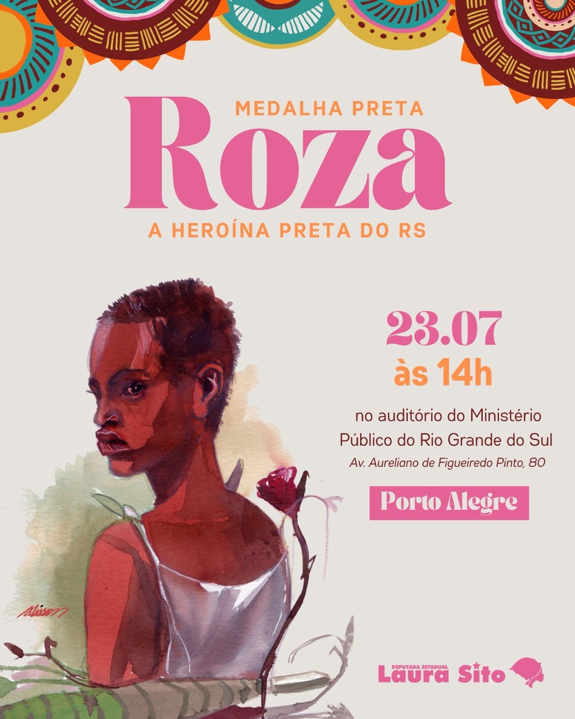 Mais do que uma cerimônia, a entrega da Medalha Preta Roza representa um gesto coletivo de reparação, memória e reconhecimento que reafirma a centralidade das mulheres negras na construção de um futuro mais justo. O evento é aberto ao público e ocorrerá no dia 23 de julho, às 14h no Auditório do Ministério Público do Rio Grande do Sul em Porto Alegre. Uma edição desta homenagem também será realizada na Região Sul do estado no dia 24 às 18h em Pelotas.