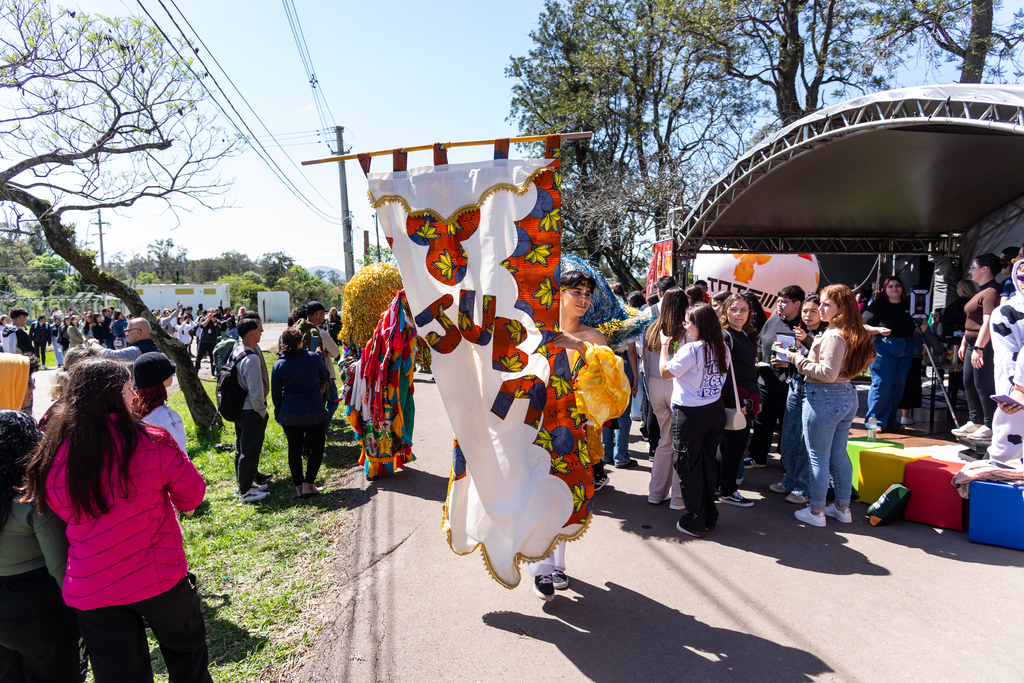 Próximo à entrada do evento, o estande do Grupo Diário se tornou um dos pontos de maior movimento. Um game interativo com perguntas sobre o Enem e o vestibular da UFSM, realizado pelo Totem Vestibulares, atraiu filas de estudantes que, acertando ou errando, ganham brindes como copos, chinelos e suportes para celular.