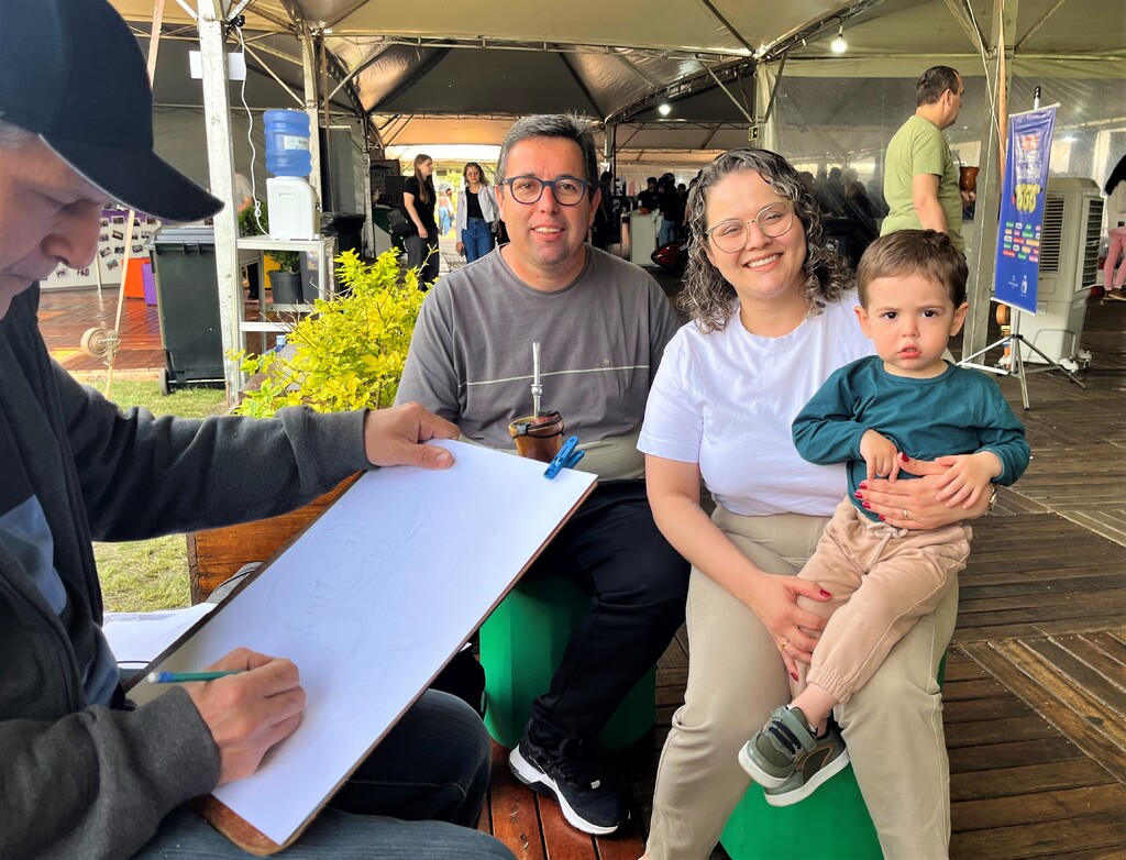 O sábado transformou a feira em um programa também para os santa-marienses. O professor do Colégio Politécnico, Adão Leonel Mello Corcini e sua esposa, Laís Mara Caetano da Silva Corsini, professora do curso de Enfermagem da UFSM, passeavam com o filho Pedro Antônio, de 2 anos, e aproveitaram para fazer uma caricatura com o artista Ezequiel Leite. Para Adão, o evento simboliza a capacidade da universidade de unir pessoas.