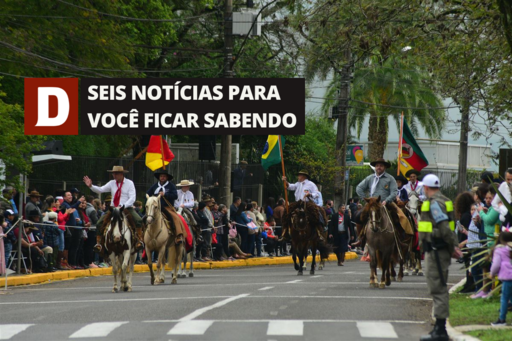 O Desfile Farroupilha de Santa Maria, que ocorreria na próxima quarta-feira, dia 20 de setembro, foi cancelado devido às grandes chuvas que atingem o Estado nos últimos dias. A informação foi confirmada pela prefeitura nesta quarta-feira (13), que explicou que a decisão foi tomada durante reunião dos integrantes da Comissão Executiva no antigo Hotel Fazenda Pampas/Cidade dos Meninos, onde ocorre o Acampamento Farroupilha. A Comissão Executiva também decidiu pelo cancelamento da Cavalgada da Integração, que seria realizada neste sábado (16). Saiba mais aqui.