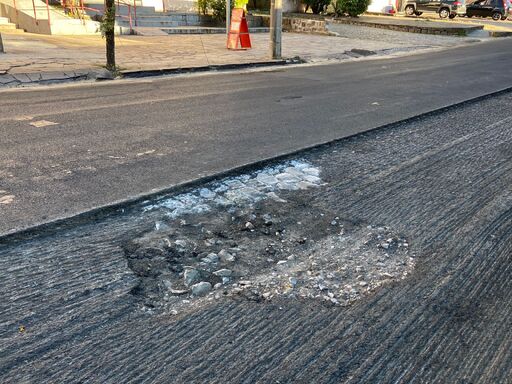 – O asfalto novo foi fresado devido às patologias na massa asfáltica que houve falha na usinagem do CBUQ (concreto betuminoso usinado a quente), que é o asfalto, o que resultou numa parte do asfalto que estava se esfarelando num trecho entre Olavo Bilac e Avenida Presidente Vargas, porque deu um probleminha na hora da usinagem lá na usina de asfalto – detalhou o secretário.
