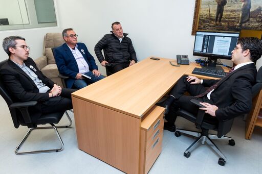 Juiz Francisco Morsch (à dir.) com os representantes dla AVTSM, Gabriel Barros, Flávio Silva e o advogado Pedro Barcelos