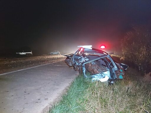 Uno onde as duas vítimas fatais estavam ficou totalmente destruído e com o impacto, foi parar no acostamento da rodovia.