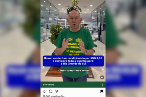É falso que as lojas Havan estejam vendendo aparelhos de ar-condicionado da marca TCL por R$ 149 para ajudar as vítimas das enchentes no Rio Grande do Sul. No vídeo usado para divulgar a suposta promoção, os golpistas utilizaram inteligência artificial para recriar a voz do proprietário da empresa, Luciano Hang. Em nota, a Havan alertou os consumidores.