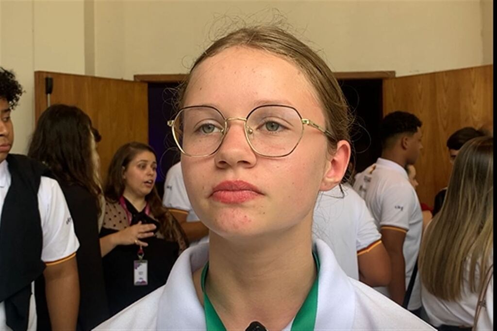 Ao lado dela, histórias mais silenciosas também ganham forma. Como a de Ramone Beatriz Platti, 15 anos, estudante da Escola Estadual de Educação Básica Professor Willy, também de Agudo, que chegou até ali por meio de uma mensagem da tia.
