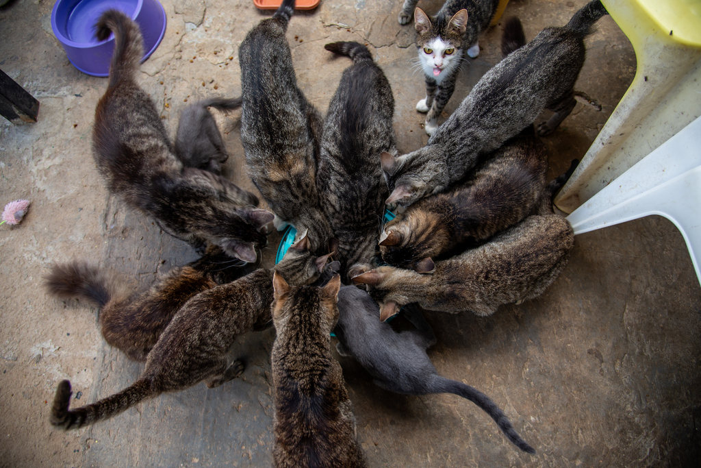 — A ração com corante faz mal. Eles precisam de ração boa, adulta, de filhote e, se possível, urinária. Qualquer ajuda faz diferença — afirma.