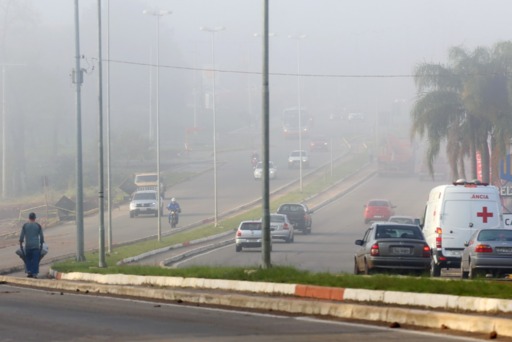 Amanhecer com neblina forte nesta quarta na Avenida Hélvio Basso, em Santa Maria