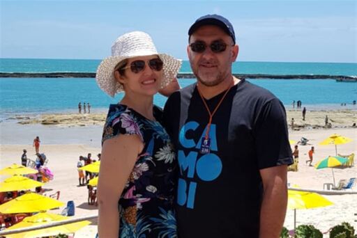 Com a mulher, Cibele Cechin Denardin, na Praia do Francês (AL)