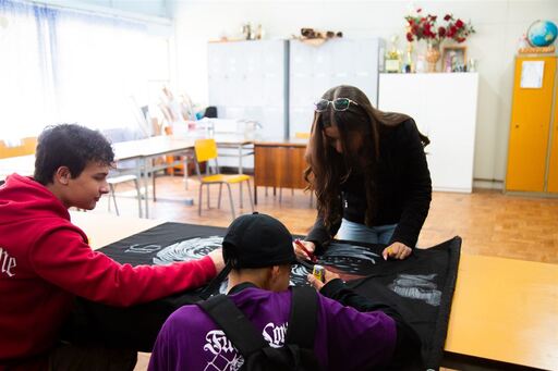 Para o evento, a direção contratou um ônibus que levará até 80 pessoas, entre alunos e funcionários, para a Avenida Medianeira. Nos últimos dois meses, os estudantes foram estimulados a pensar e criar brasões a serem apresentadas durante o desfile. Na biblioteca da escola, os alunos do 9º ano do Ensino Fundamental, Rhiquison Cecchin Alves, 15 anos; Kelvin Augusto Santos dos Santos, 15, e Lavínia Xavier Rubattino, 15, (na foto abaixo) finalizavam a pintura de uma fênix que representará a turma 91. A escolha é justificada por Rhiquison: