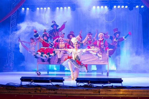 O espetáculo é cheio de números circenses, malabares, contorcionismo, equilibrismo e dura cerca de uma hora.