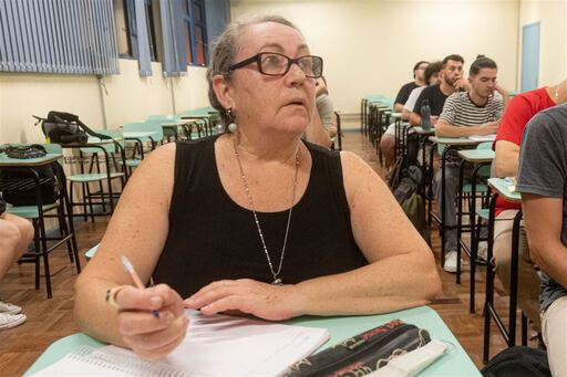 No último andar do prédio 74-A da Universidade Federal de Santa Maria (UFSM), as discussões evocadas na disciplina de Lógica instigam os alunos do curso de Filosofia bacharelado. Na primeira fileira, próximo à carteira do professor, uma aluna anota com afinco as observações da aula e, com algumas pausas, se refresca do calor santa-mariense abanando um leque. Interessada nas explicações e, ao mesmo tempo, amigável e sorridente com os colegas, a caloura Marliza Leoratto Viário chama a atenção não apenas pela dedicação e simpatia, mas também pela determinação que a levou a ingressar pela primeira vez no Ensino Superior aos 68 anos. Ela é a bixo com maior idade a ingressar neste primeiro semestre de 2023 na UFSM, o que torna a conquista ainda mais especial.Natural de Jaguari, Marliza se mudou ainda criança, aos 7 anos, para Itaqui. Foi lá que realizou o Segundo Grau com foco no Curso Técnico em Contabilidade. De lá para cá, foram anos e mais anos lidando com legislações trabalhistas e tributárias. Mesmo trabalhando com números, outras áreas sempre chamaram a atenção de Marliza, uma delas era a filosofia, curso que se dedicou para passar pelo Exame Nacional do Ensino Médio (Enem). A “vovó da turma”, como gosta de ser chamada, estudou durante um ano, revisando conteúdos em uma apostila e vendo aulas no YouTube. — Quando a gente é jovem muitas vezes tem que se decidir por uma profissão e não se tem disponibilidade para escolher o que mais se gosta, né? Eu sempre tive uma paixão maior pela filosofia. Procurava frases e conselhos dos filósofos. Para mim, ter passado na chamada (oral) é a realização de um grande sonho — comenta.