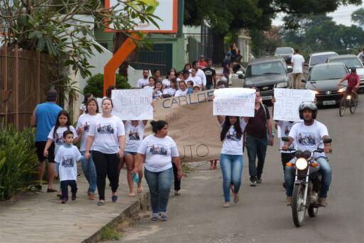 Uma semana depois do acidente que vitimou o motociclista Luiz Carlos Martins, 39 anos, na BR-158, cerca de 40 amigos e familiares fizeram uma caminhada em protesto pela violência no trânsito na tarde de sábado. Luiz Carlos trabalhava como segurança no Posto Peninha, na Rua Venâncio Aires, em Santa Maria. A caminhada partiu da frente do local de trabalho de Luiz Carlos e foi até a avenida Walter Jobim. Vestindo camisetas estampadas com a foto do motociclista, familiares e amigos ainda carregavam cartazes pedindo justiça e mais atenção dos motoristas ao volante.