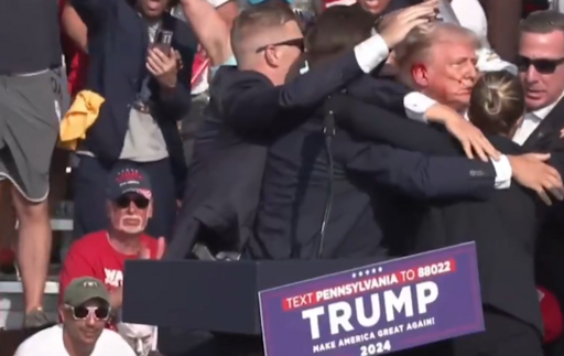 Momento da transmissão em que Trump aparece ferido