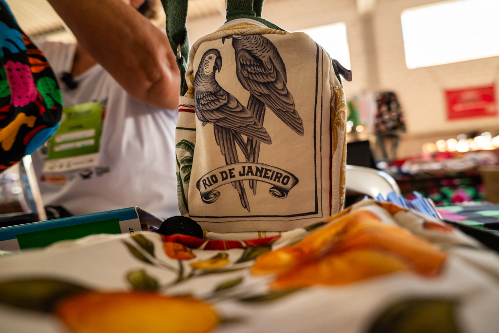 — Eu vim de Niterói, do Rio de Janeiro, e eu faço bolsas. São tecidos de doações. A Farm, uma marca de roupas, doa os tecidos, e nós, mulheres que não temos idade para trabalhar nem para aposentar, ficamos sem renda nenhuma. Eles ajudam com os tecidos, e a gente faz um preço justo. Porque, se a gente está ganhando, a gente pode doar também para quem não tem — conta Geovania, mostrando uma de suas bolsas com bolso interno, zíper e alças ajustáveis.