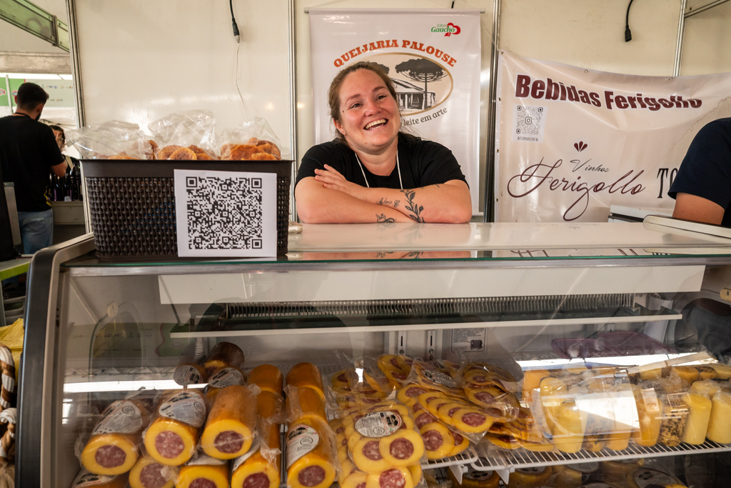 De Jaguari, a jovem produtora Carla Espolaor também reforça o impacto da feira para quem vive da agricultura familiar. Ela participa da Feicoop pelo segundo ano consecutivo, apresentando os queijos produzidos por sua agroindústria.