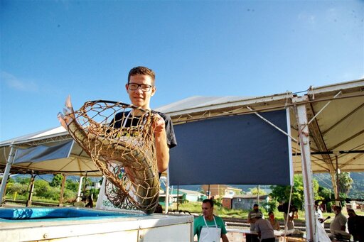 Acordado desde às 5h desta terça, o jovem Erick Silva de Lima, 18 anos, está trabalhando pela primeira vez no local. Responsável pela organização dos peixes, ele estava manuseando as espécies carpa carpa-capim, carpa-cabeça-grande e jundiá nos tanques de água.