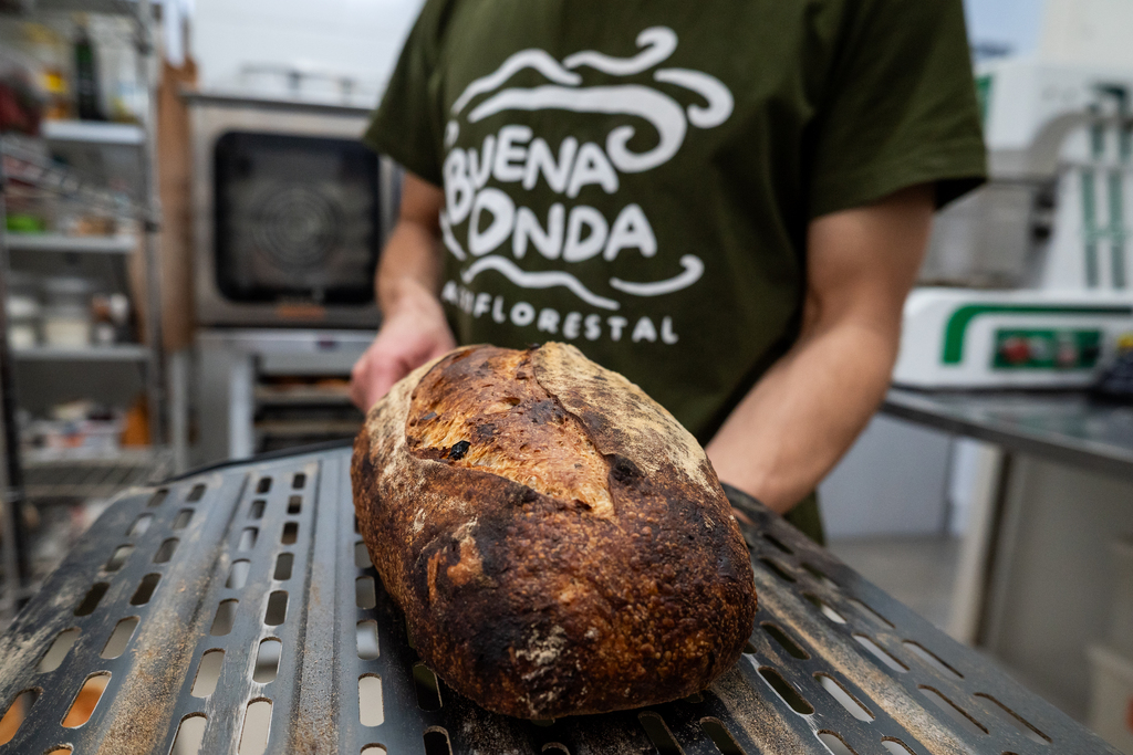 O vapor que escapa do forno marca o ritmo do dia na Buena Onda. Cada pão leva dois dias para nascer. Tempo suficiente para que o aroma, a textura e o propósito da marca se misturem em um mesmo gesto: alimentar com consciência. O sócio da iniciativa, Alex Freitas, acompanha todos os processos com atenção. Ali, o pão é mais do que alimento: é o resultado de uma filosofia que une sustentabilidade, agricultura familiar e propósito.