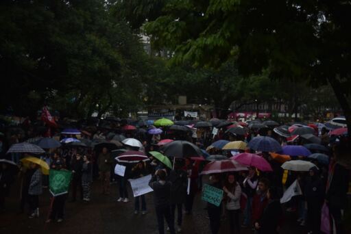 Na sequência das mobilizações que aconteceram de manhã na entrada da UFSM, à tarde, houve um ato público na Praça Saldanha Marinho, no Centro. Mesmo com a chuva e o frio, o número de participantes foi grande. Havia cartazes em defesa de investimentos na UFSM e no Instituto Federal Farroupilha (IFFar). No início da noite, os manifestantes fizeram uma caminhada pela Rua do Acampamento.