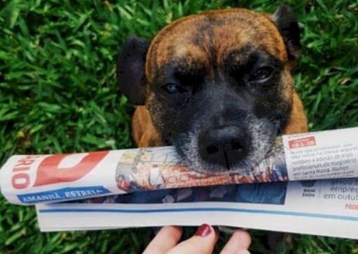 Athena, a cadelinha da Nadyne Pedrozzo Dias, entrega todos os dias o jornal na porta da casa da família