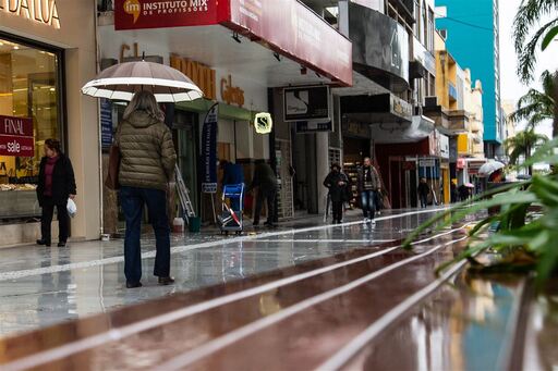 O tempo segue fechado, com chuva persistente e queda nas temperaturas.