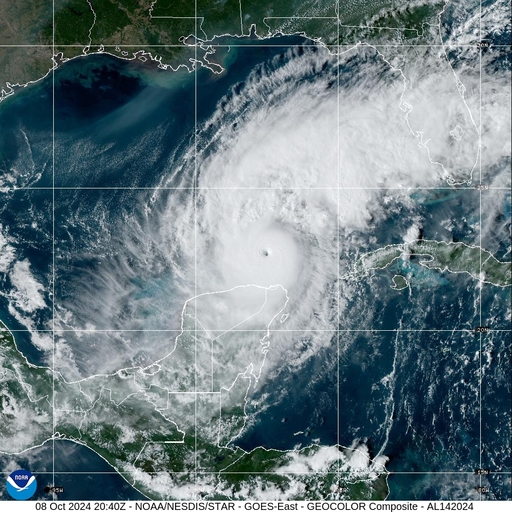 Imagens feitas satélite pelo Centro Nacional de Furacões dos Estados Unidos mostra o furacão Milton avançando no Golfo do México.