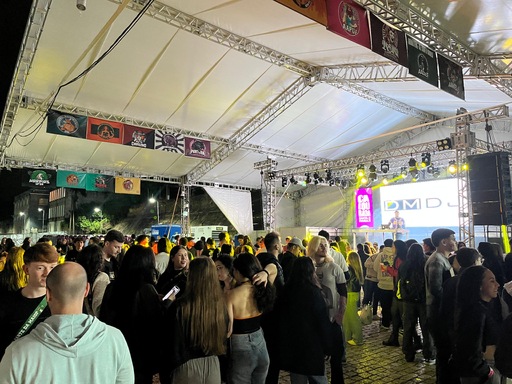 Entre os participantes da primeira noite, estava Caroline Amaral de Souza, 18 anos, natural de Cachoeira do Sul, ela é bixo do curso de Ciências Contábeis da UFSM. Ao lado de colegas, ela marcou presença no evento para comemorar o início da vida universitária.
