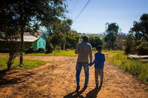 O representante e liderança da comunidade de São Miguel dos Carvalhos, Roberto Potássio Rosa, 67 anos, e o neto Eliézer de Souza Rosa, 7 anos