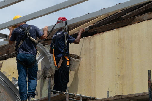 - Estamos revisando o madeiramento. Analisamos e vemos se algo pode ser reaproveitado. Fazendo a instalação da madeira, passamos para a chapa. Com isso, teremos uma subcobertura. Aí vem a parte do isolamento térmico, depois as ripas e, em seguida, a própria telha. Então, no momento, o foco é finalizar a parte de madeiramento do pavilhão 3, para seguir com as próximas etapas.