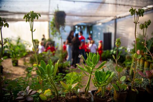 – O fato de ter areia dentro da estufa já é um ponto positivo, porque é um elemento sensorial. Se você faz atividade com uma turma, já é um elemento sensorial, pode pedir para tirarem o calçado e é uma outra experiência que você vai ter – relata a paisagista Daiane.