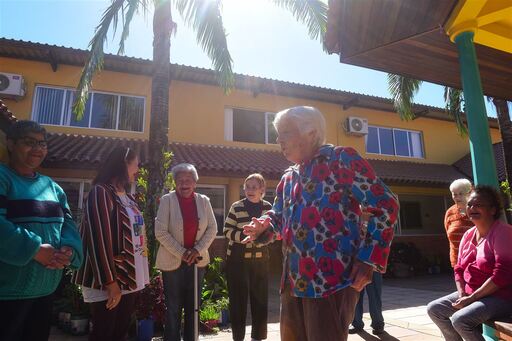 O coreto encontrado no pátio do Lar é o ponto de encontro das vovós para aproveitar o sol, conversar, cuidar das plantas e cantar. A acolhida, Maria da Conceição Agosta Souto, 91 anos, gosta de dançar no coreto enquanto entoa as músicas do Grupo Mexe Coração de Santa Maria, projeto voltado para a terceira idade. Maria adora declamar poesias e divertir as outras vovozinhas. Ela fez apenas um pedido de Natal, mas com uma restrição:
