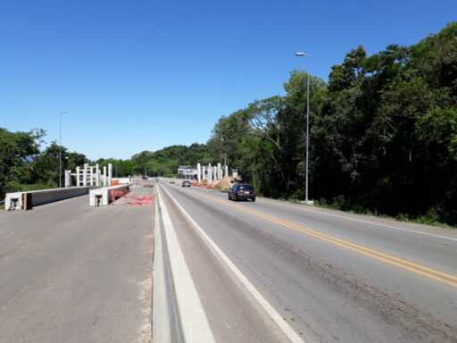 Foi concluído no início da tarde desta quinta-feira a operação de lançamento dos pilares da passarela que está sendo construída na Vila Floresta. O trânsito na BR-158, que estava bloqueado desde o início da manhã de hoje, já está liberado.