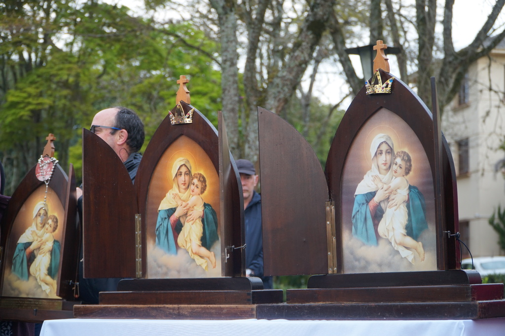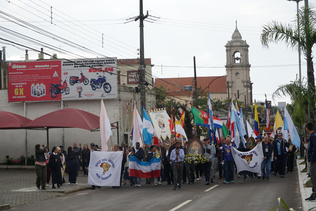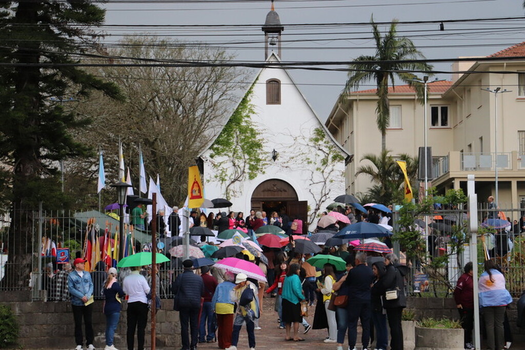 Antes da procissão, o domingo começou com a tradicional Romaria da Primavera, às 8h, no Santuário Tabor. Criada em 1952 pelo diácono João Luiz Pozzobon, a romaria é um momento de gratidão pelas visitas mensais da Mãe Três Vezes Admirável de Schoenstatt às famílias, pela sua presença materna e por suas graças. O nome faz referência ao início da primavera, tempo que o diácono associava a uma “primavera espiritual” de amor, fé e esperança na Igreja e no mundo.