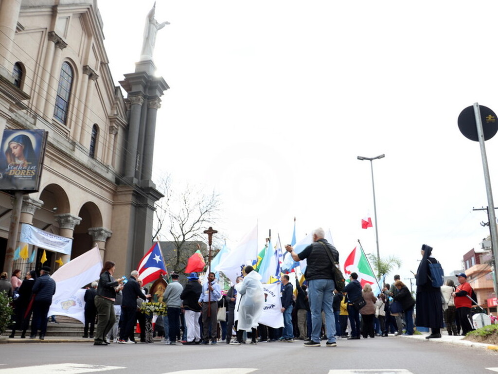 Nem a previsão de chuva foi capaz de parar a fé em Santa Maria. Neste domingo (14), mais de 2 mil fiéis caminharam do Santuário Tabor até a Basílica Nossa Senhora Medianeira, encerrando o Encontro Internacional da Campanha da Mãe Peregrina, que reuniu 700 participantes de 26 países desde quarta-feira (10) na cidade.