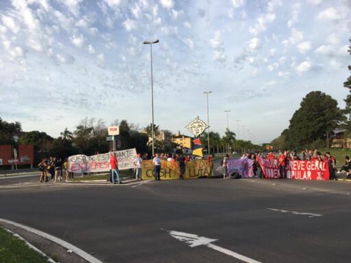 O dia de greve geral - contra a Reforma da Previdência e cortes no orçamento - começou com protestos em frente a empresas de ônibus e na Universidade Federal de Santa Maria (UFSM) em Santa Maria. Em escolas, como o Colégio Estadual Manoel Ribas, não há aulas por conta dos protestos. Funcionários da Corsan também se manifestam de forma pacífica, e o atendimento à população foi reduzido. Não há registros de bloqueios nas estradas da região.