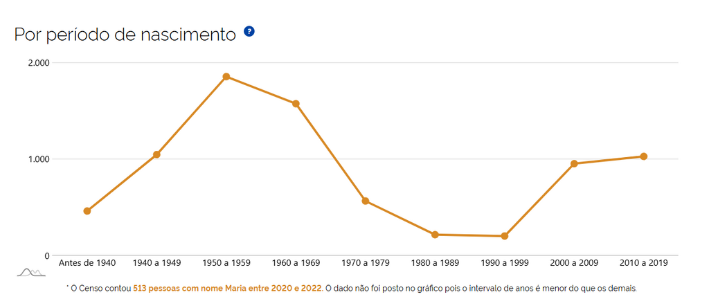 O nome Maria, que dominou os registros de nascimento até a década de 1970, perdeu popularidade nos anos seguintes. O tradicional nome chegou a ocupar apenas a 33ª posição na década de 1980 e a 37ª nos anos 1990. Nas oportunidades, Ana foi o nome mais comum nos anos 1980, Lucas dominou a década de 1990 e João liderou nos anos 2000