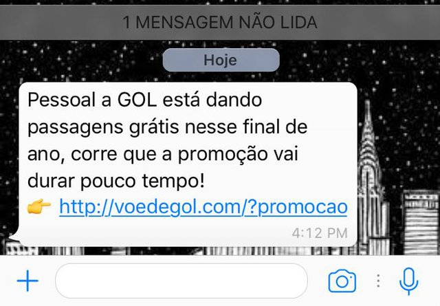 Você recebeu pelo Whats App uma mensagem oferecendo passagens áreas grátis? Cuidado! Trata-se de um golpe.
