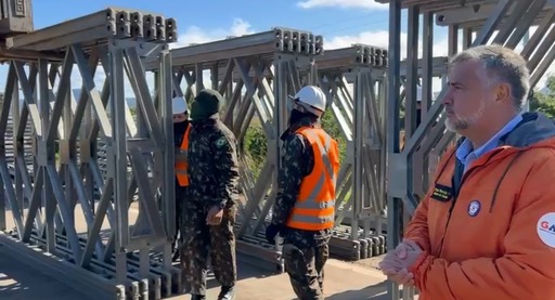 Visita do Ministro Pimenta durante construção da ponte móvel na RSC-287.