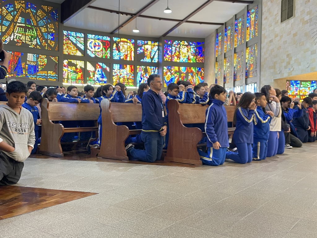 O Santuário da Basílica da Medianeira reuniu, na manhã desta quarta-feira (23), estudantes e representantes de escolas católicas e outras instituições para missa em homenagem ao papa Francisco.
