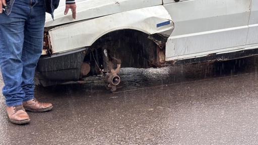 Ele não soube informar se o problema foi causado pelos buracos formados ao longo da semana devido às chuvas ou por alguma falha no rolamento da roda.