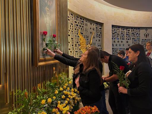 Por trás de cada flor que tocava o quadro de Nossa Senhora Medianeira, o amor e o agradecimento pelas graças alcançadas. O gesto, por vezes, foi acompanhado do choro de emoção. Ao final da celebração religiosa, os devotos foram convidados a ofertar as flores que levaram até a Basílica com o objetivo de homenageá-la. Ao som de cantigas como “Ave Maria” e “Maria da minha infância”, a imagem coroada ganhou a companhia do colorido dos ramos.
