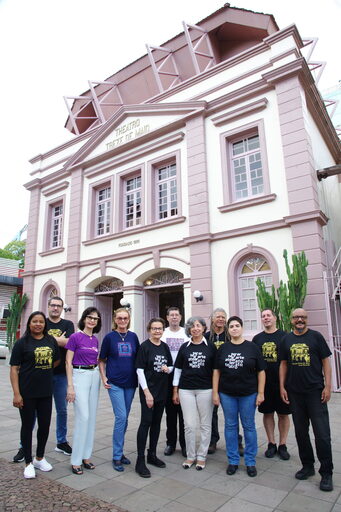Cintia dos Santos Almeida (à esq.) chegou ao teatro como funcionária temporária, ela trabalharia durante 15 dias para substituir uma colega. No final no último dia, José Luiz perguntou se ela tinha gostado de trabalhar no local. Sem pensar duas vezes, Cintia respondeu que sim e, há 10 anos, faz parte da equipe.