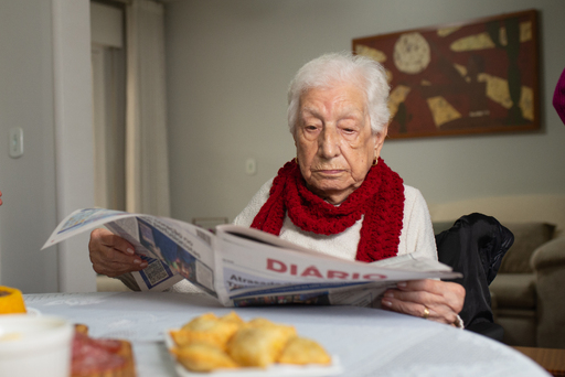 Aos 102 anos, ler o jornal impresso é um dos hábitos diários da dona Carmelina