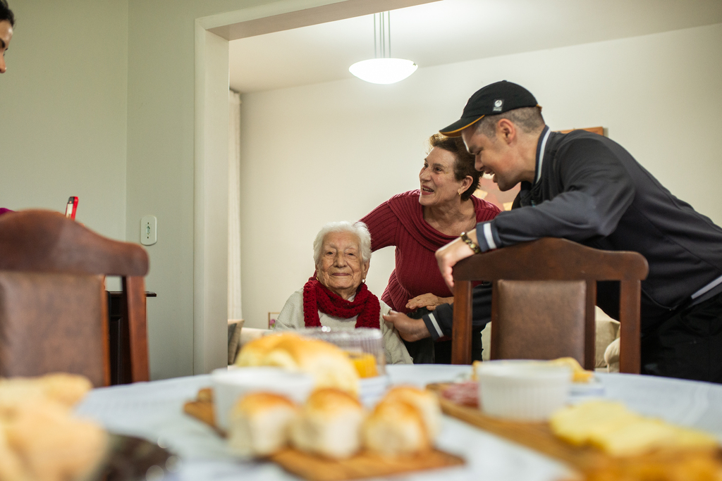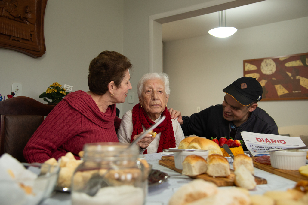 A rotina de Carmelina também inclui exercícios físicos orientados. Embora tenha dado uma pausa nas idas à academia durante o inverno, para evitar gripes e resfriados, ela segue sendo acompanhada por uma fisioterapeuta em casa. Para Alice, essa vitalidade está diretamente ligada ao ambiente de acolhimento que a mãe encontra na família.